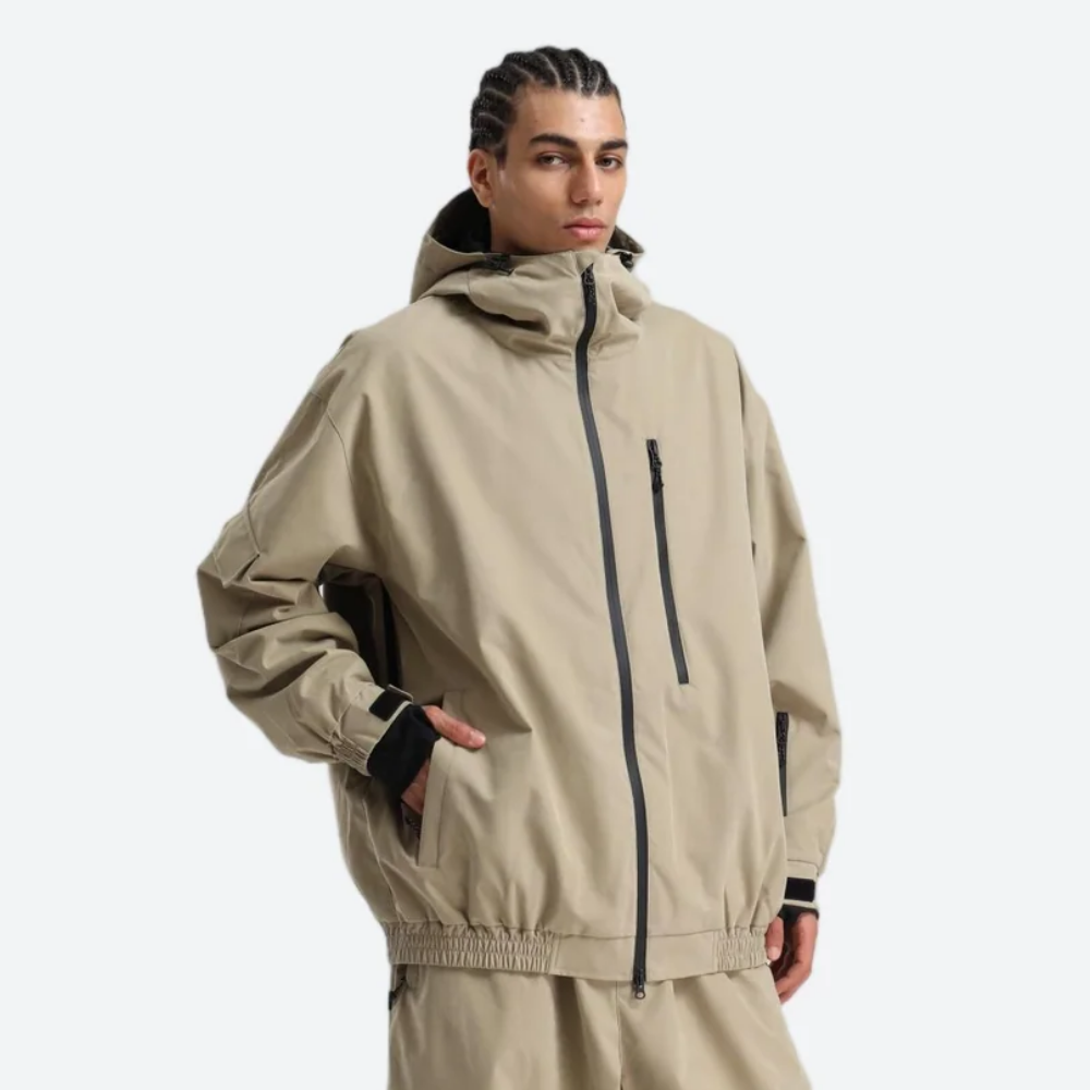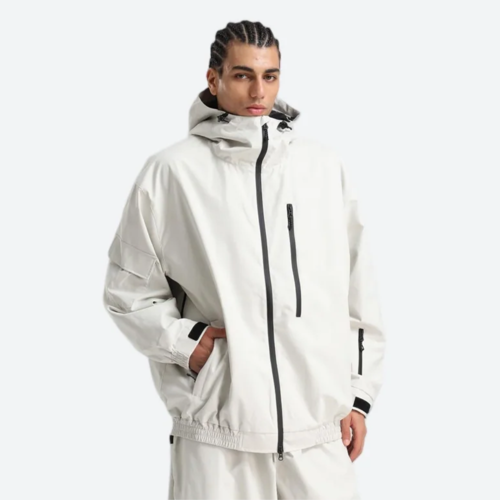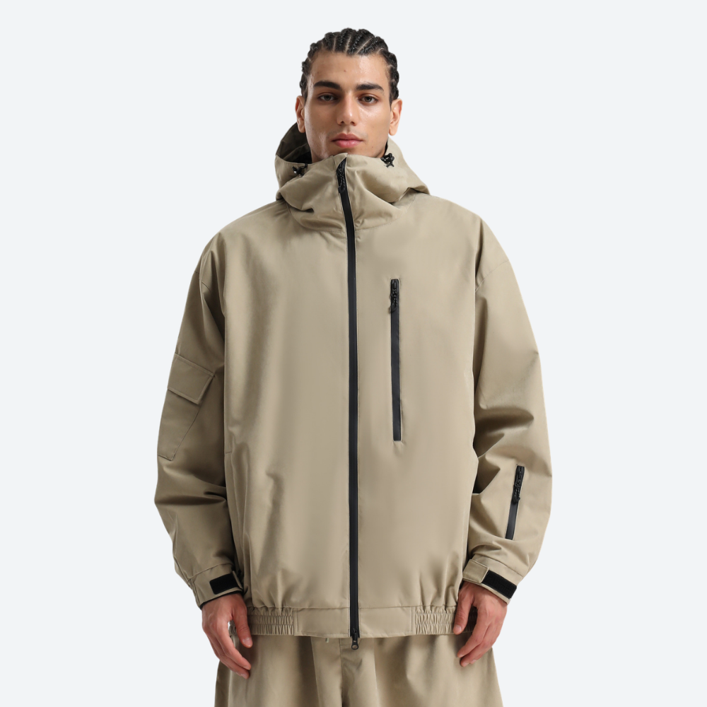 Relaxed fit with adjustable hood, cuffs, waist, and hem for adaptive coverage and free movement.
