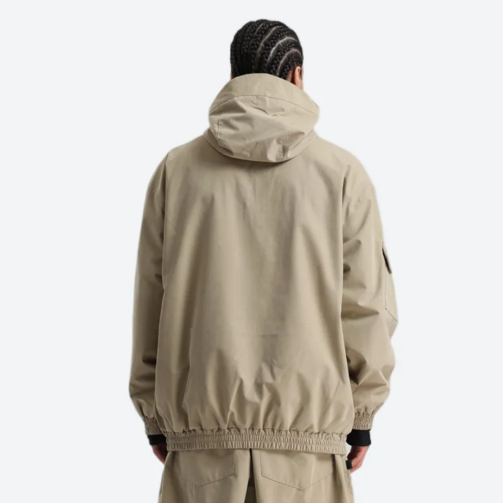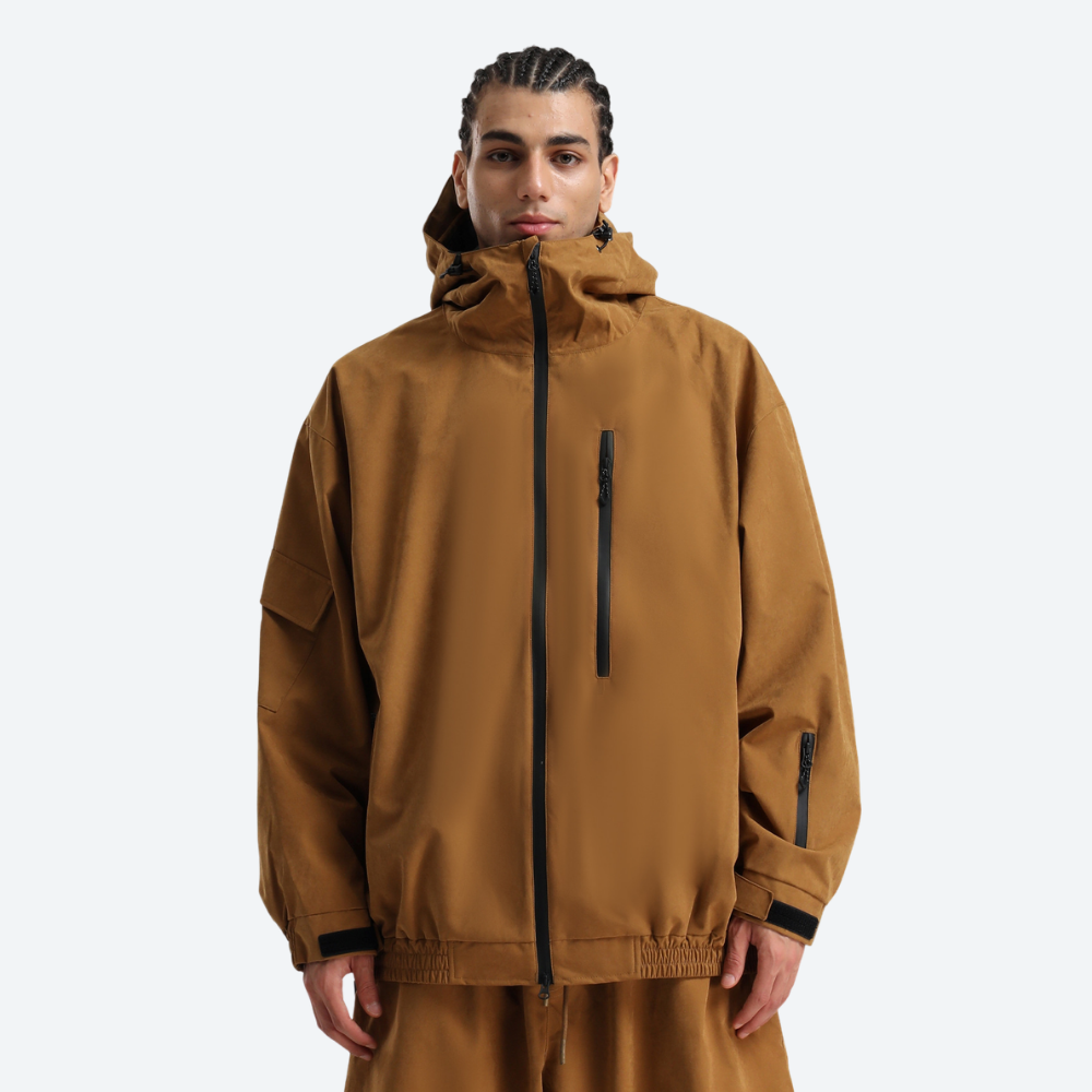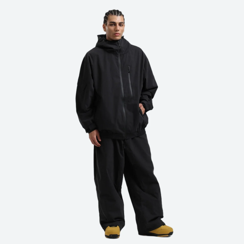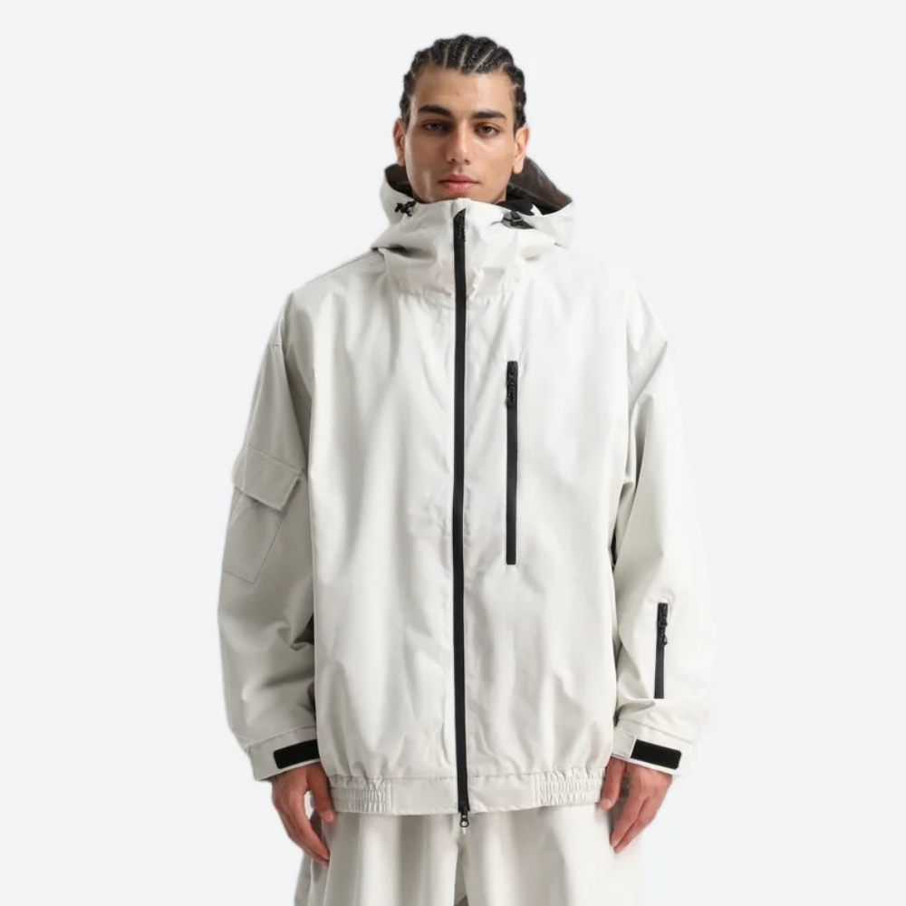 Relaxed fit with adjustable hood, cuffs, waist, and hem for adaptive coverage and free movement.